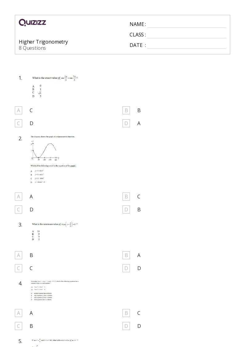 50+ Trigonometry Worksheets For 11th Class On Quizizz